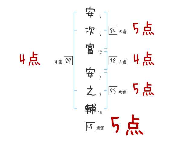 安次富安之輔さんの画数の鑑定結果