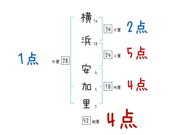 横浜安加里さんの画数の鑑定結果