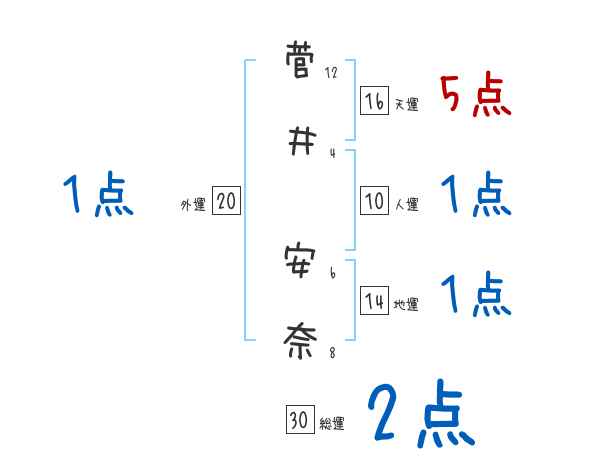 外運![]() | 菅井安奈さんの外運は20画の1つ星!社交が苦手。人とは違った才能があり波乱万丈な人生かも。 生活面を象徴する運勢です。外部から受ける影響力を表し、結婚運、家庭運や職場、環境への順応性を表します。 |