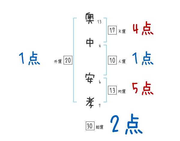 総運![]() | 奥中安孝さんの総運は30画の2つ星!浮き沈みの激しさに注意しましょう。 あなたの人生を表す1番重要な運勢です。生涯を通じて影響する総合運となり、主に50歳以降の晩年期に影響を及ぼします。 |