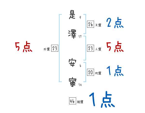 是澤安寧さんの画数の鑑定結果