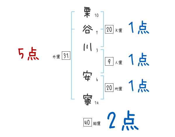 栗谷川安寧さんの画数の鑑定結果