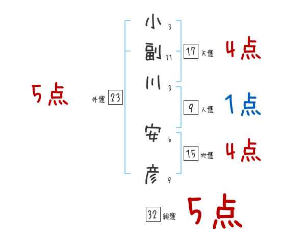 小副川安彦さんの画数の鑑定結果