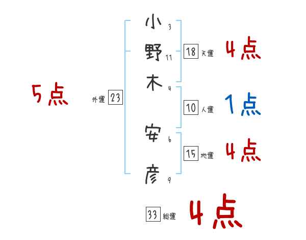 小野木安彦さんの画数の鑑定結果