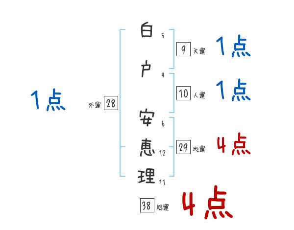 天運![]() | 白戸安恵理さんの天運は9画の1つ星!消極的で才能を発揮することが苦手なことも。周りの意見に耳を傾けましょう。 家系が持つ宿命的な運勢を表します。祖先から受け継いだ苗字ですので自分の力が及びません。家柄を象徴します。 |