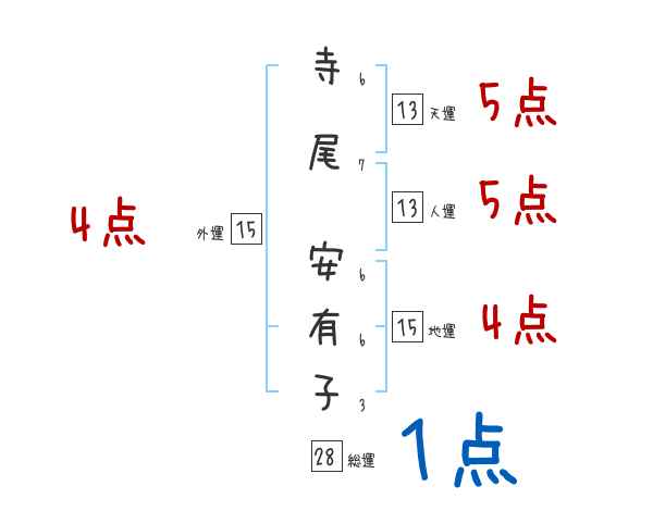 寺尾安有子さんの画数の鑑定結果