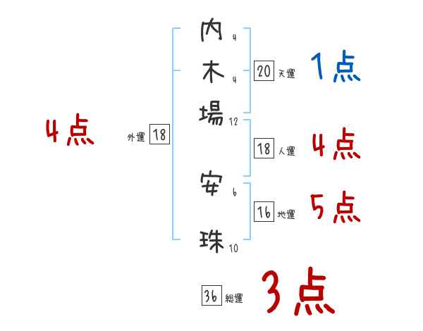 内木場安珠さんの画数の鑑定結果