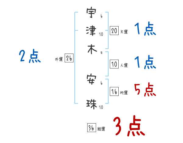宇津木安珠さんの画数の鑑定結果