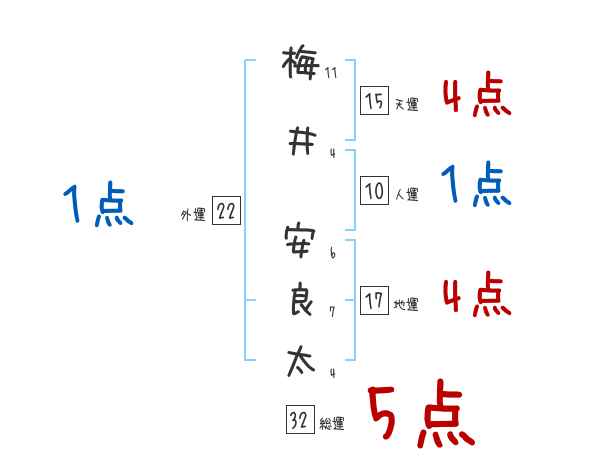 梅井安良太さんの画数の鑑定結果