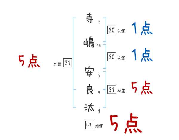寺嶋安良汰さんの画数の鑑定結果