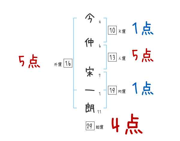 家系が持つ宿命的な運勢を表します。祖先から受け継いだ苗字ですので自分の力が及びません。家柄を象徴します。