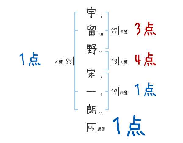 宇留野宋一朗さんの画数の鑑定結果