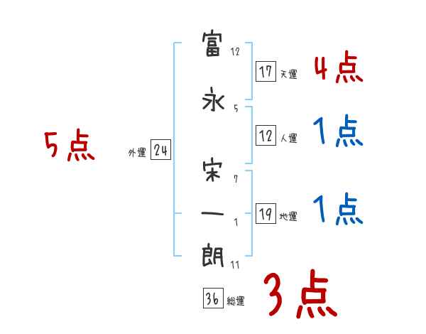 富永宋一朗さんの画数の鑑定結果
