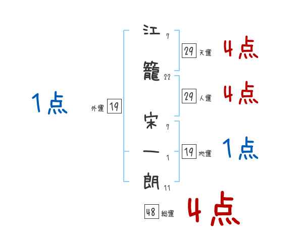 家系が持つ宿命的な運勢を表します。祖先から受け継いだ苗字ですので自分の力が及びません。家柄を象徴します。