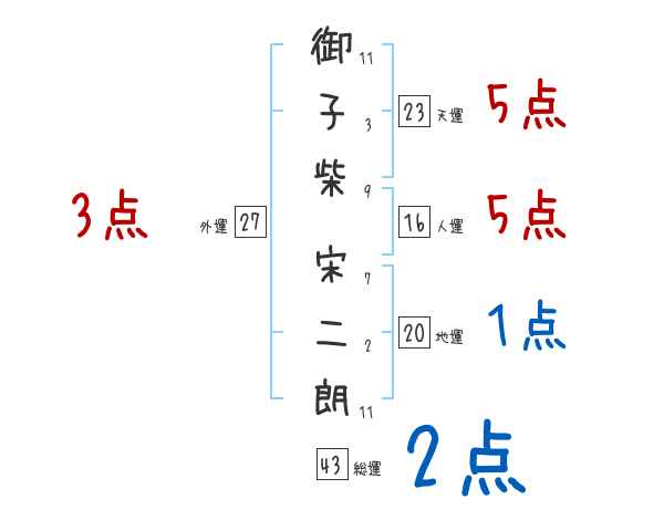 御子柴宋二朗さんの画数の鑑定結果