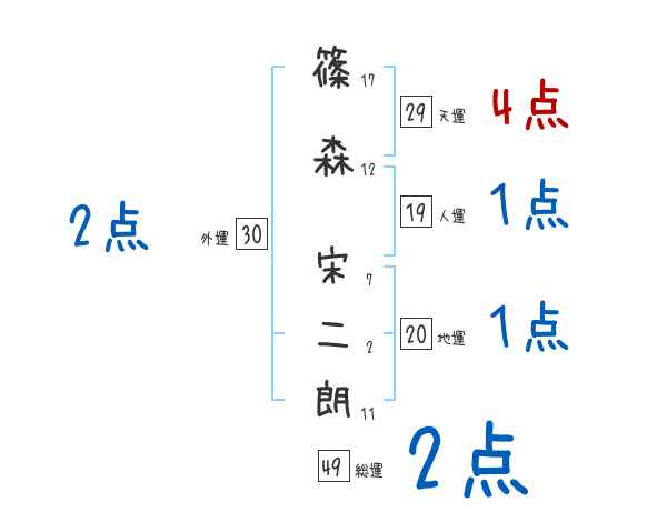 篠森宋二朗さんの画数の鑑定結果