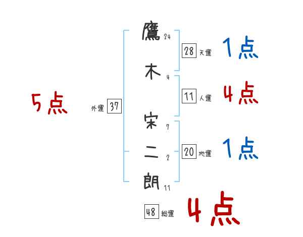 鷹木宋二朗さんの画数の鑑定結果