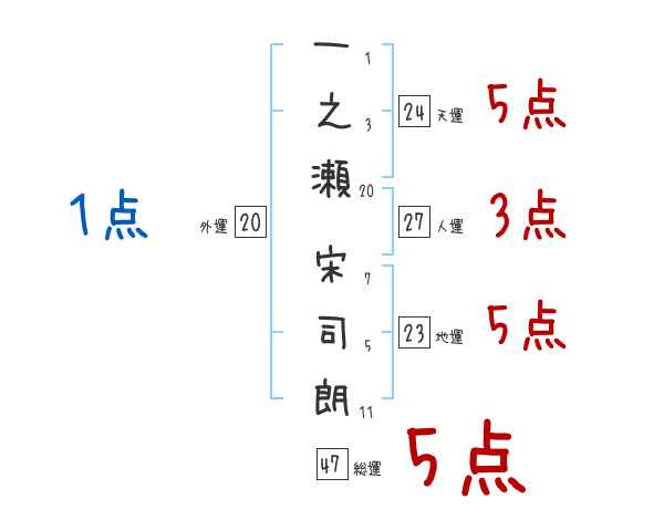 一之瀬宋司朗さんの画数の鑑定結果