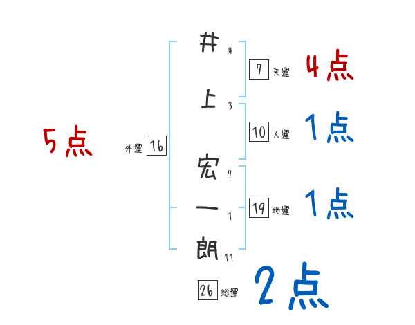 井上宏一朗さんの画数の鑑定結果
