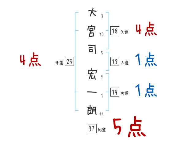 大宮司宏一朗さんの画数の鑑定結果