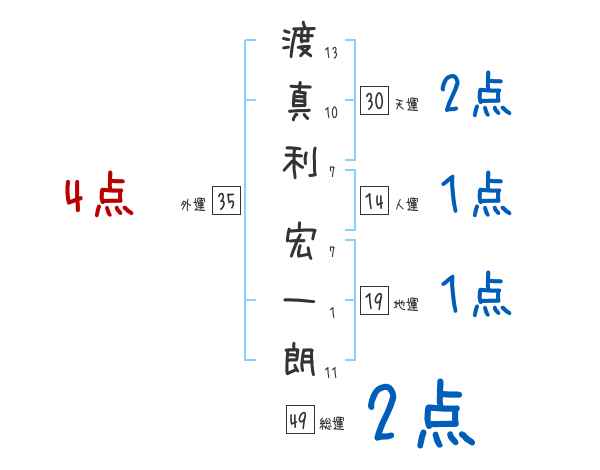 渡真利宏一朗さんの画数の鑑定結果