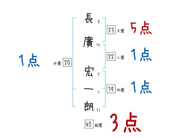 長廣宏一朗さんの画数の鑑定結果