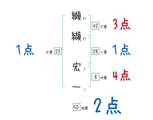 外運![]() | 纐纈宏一さんの外運は22画の1つ星!努力することが苦手ないっぽう手先が器用。芸術性にも優れる。 生活面を象徴する運勢です。外部から受ける影響力を表し、結婚運、家庭運や職場、環境への順応性を表します。 |