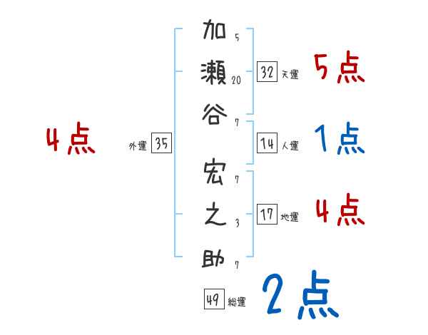 加瀬谷宏之助さんの画数の鑑定結果