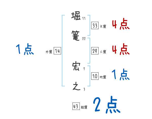 堀篭宏之さんの画数の鑑定結果