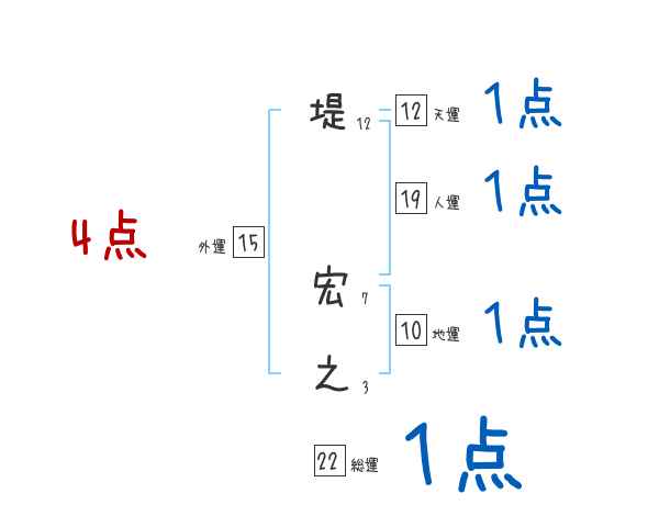 総運![]() | 堤宏之さんの総運は22画の1つ星!努力することが苦手ないっぽう手先が器用。芸術性にも優れる。 あなたの人生を表す1番重要な運勢です。生涯を通じて影響する総合運となり、主に50歳以降の晩年期に影響を及ぼします。 |