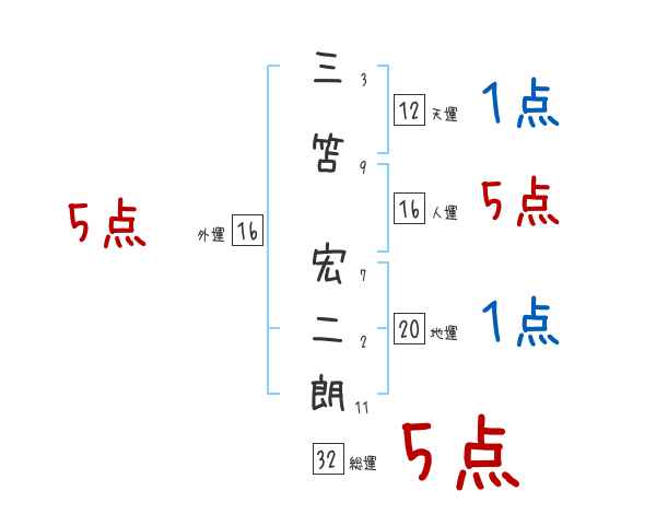 総運![]() | 三笘宏二朗さんの総運は32画の5つ星!柔軟性があり成功する。チャンスが多く金運が良い。 あなたの人生を表す1番重要な運勢です。生涯を通じて影響する総合運となり、主に50歳以降の晩年期に影響を及ぼします。 |