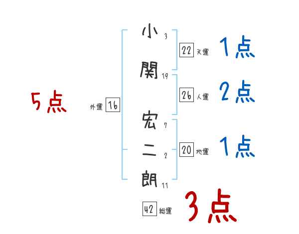 小関宏二朗さんの画数の鑑定結果