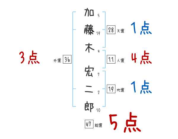 天運![]() | 加藤木宏二郎さんの天運は28画の1つ星!家庭環境に注意。スポーツで活躍できる能力があるかも。 家系が持つ宿命的な運勢を表します。祖先から受け継いだ苗字ですので自分の力が及びません。家柄を象徴します。 |