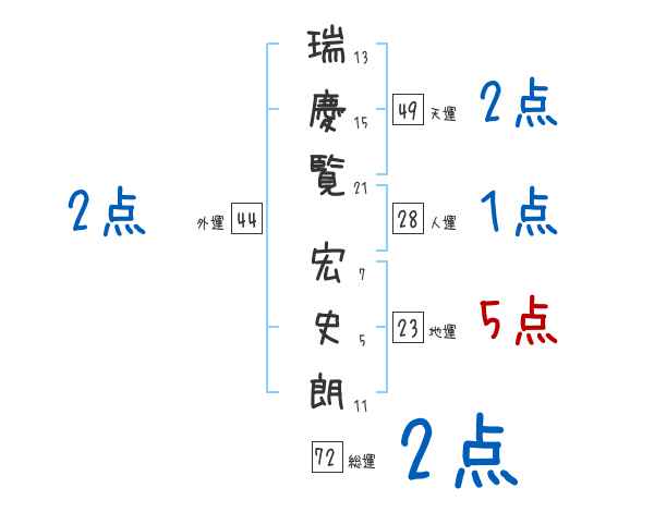 瑞慶覧宏史朗さんの画数の鑑定結果