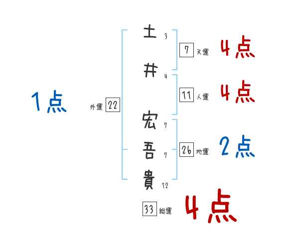 天運![]() | 土井宏吾貴さんの天運は7画の4つ星!強い意志や信念を持ち独立心が強い。自立する。 家系が持つ宿命的な運勢を表します。祖先から受け継いだ苗字ですので自分の力が及びません。家柄を象徴します。 |