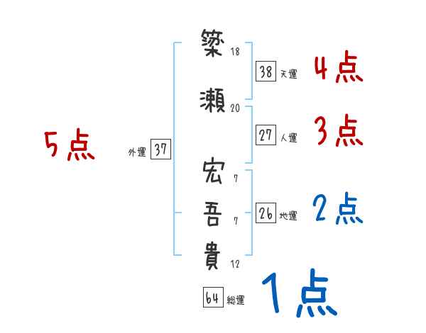簗瀬宏吾貴さんの画数の鑑定結果