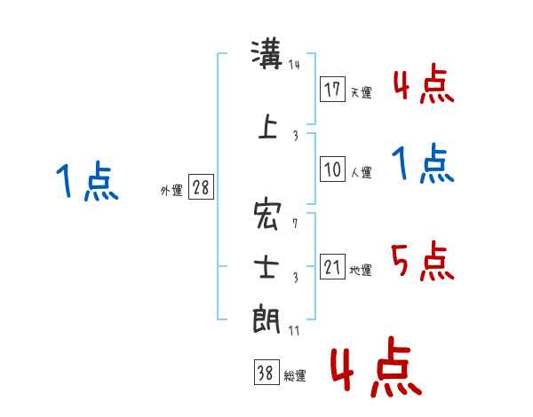 溝上宏士朗さんの画数の鑑定結果