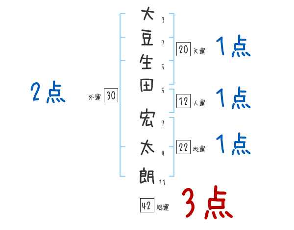 大豆生田宏太朗さんの画数の鑑定結果