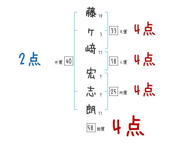 藤ヶ﨑宏志朗さんの画数の鑑定結果