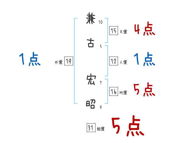 兼古宏昭さんの画数の鑑定結果