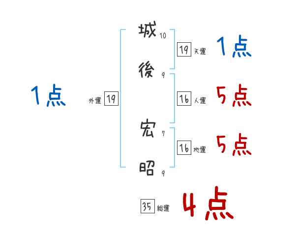 城後宏昭さんの画数の鑑定結果