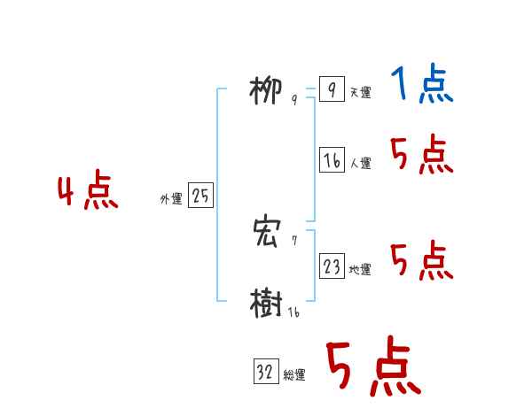 栁宏樹さんの画数の鑑定結果