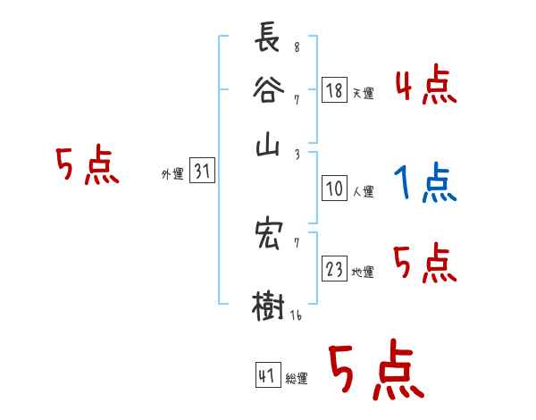 天運![]() | 長谷山宏樹さんの天運は18画の4つ星!情熱的で剛気。忍耐力があり信頼される。 家系が持つ宿命的な運勢を表します。祖先から受け継いだ苗字ですので自分の力が及びません。家柄を象徴します。 |