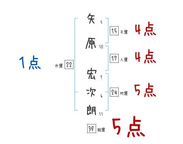 外運![]() | 矢原宏次朗さんの外運は22画の1つ星!努力することが苦手ないっぽう手先が器用。芸術性にも優れる。 生活面を象徴する運勢です。外部から受ける影響力を表し、結婚運、家庭運や職場、環境への順応性を表します。 |
