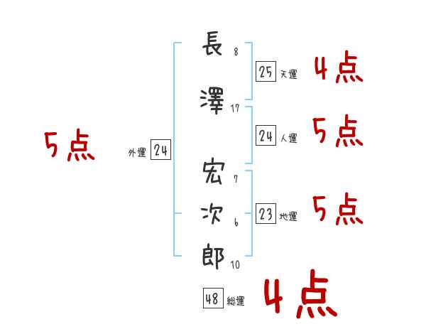 長澤宏次郎さんの画数の鑑定結果