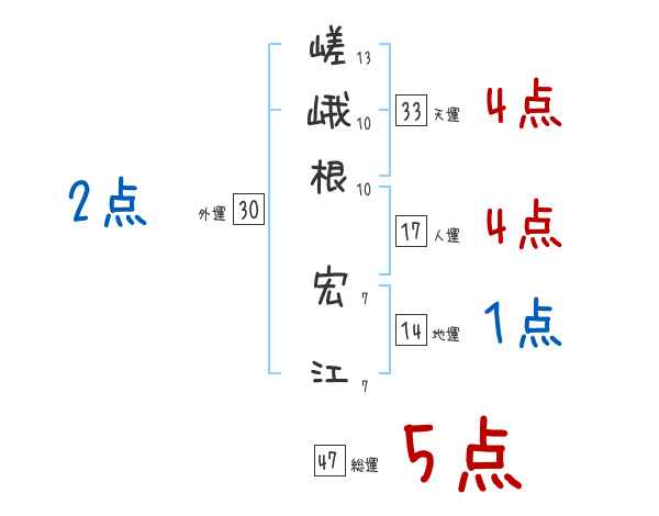 天運![]() | 嵯峨根宏江さんの天運は33画の4つ星!権力志向でプライドが高い。勇気があり運を切り開き成功する。 家系が持つ宿命的な運勢を表します。祖先から受け継いだ苗字ですので自分の力が及びません。家柄を象徴します。 |
