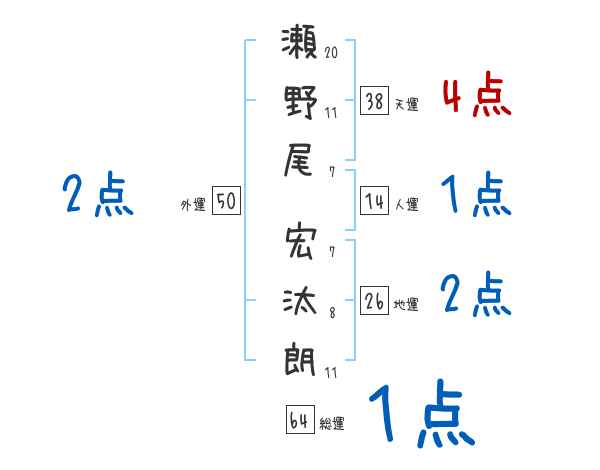 瀬野尾宏汰朗さんの画数の鑑定結果