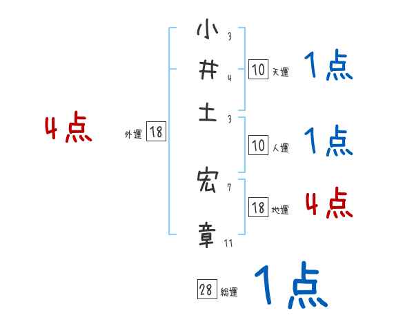 小井土宏章さんの画数の鑑定結果