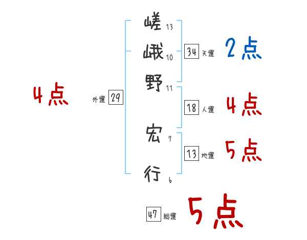 嵯峨野宏行さんの画数の鑑定結果