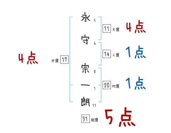 天運![]() | 永守宗一朗さんの天運は11画の4つ星!着実に富や地位を得る幸運な人生。 家系が持つ宿命的な運勢を表します。祖先から受け継いだ苗字ですので自分の力が及びません。家柄を象徴します。 |